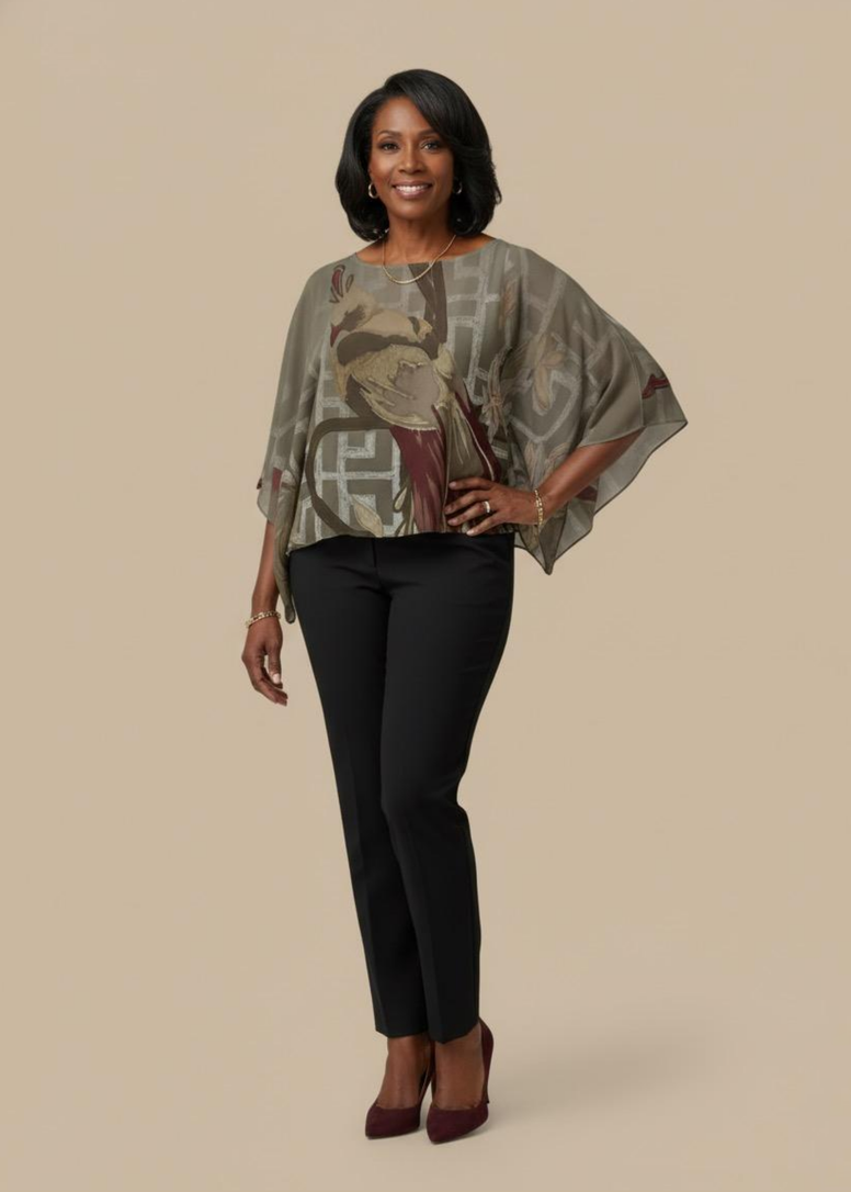 Our Scarlet Woven Chiffon Shawl, delicately crafted with a boat neckline is a best seller. Designed with a seam underneath the arms, this shawl offers a unique sensation akin to a sophisticated blouse, ensuring it stays comfortably in place without fluttering in the wind. The chic plain finish seams add a refined touch, elevating your ensemble with understated sophistication and timeless style.